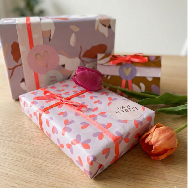 Deze set is speciaal samengesteld voor verjaardagen, bedankjes en ‘zomaar’-momenten. De zachte kleuren, speelse prints en luxe linten zorgen voor een geheel waarmee jouw cadeau er meteen bijzonder uitziet.