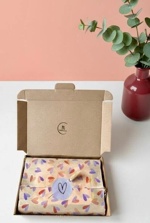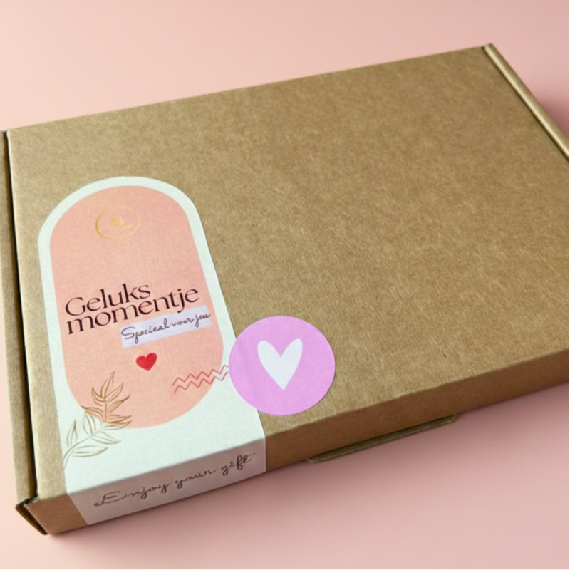 Alles wordt met veel liefde ingepakt in met zijdevloeipapier, een droogbloem en schrijven het kaartje met jouw persoonlijke tekst.